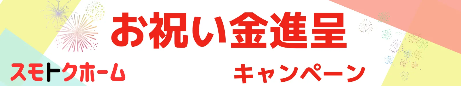 - 初回お問い合わせ時に「お祝い金進呈キャンペーンを見た」とお伝えいただいた方