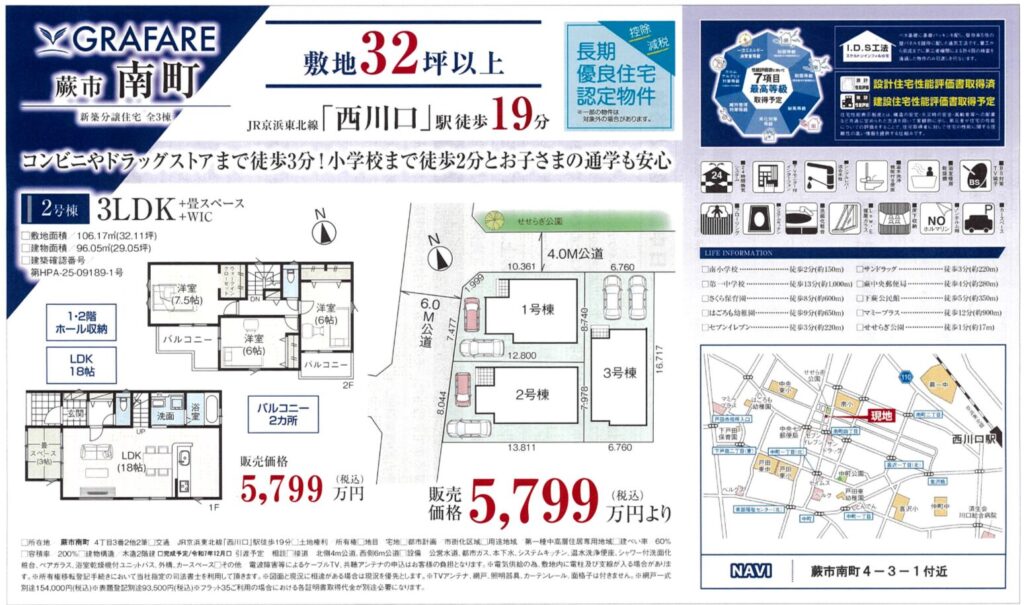 蕨市南町全3棟(3号棟)を当初の価格5,899万円で計算すると約197万円がスモトクホームで購入するとお得になります。