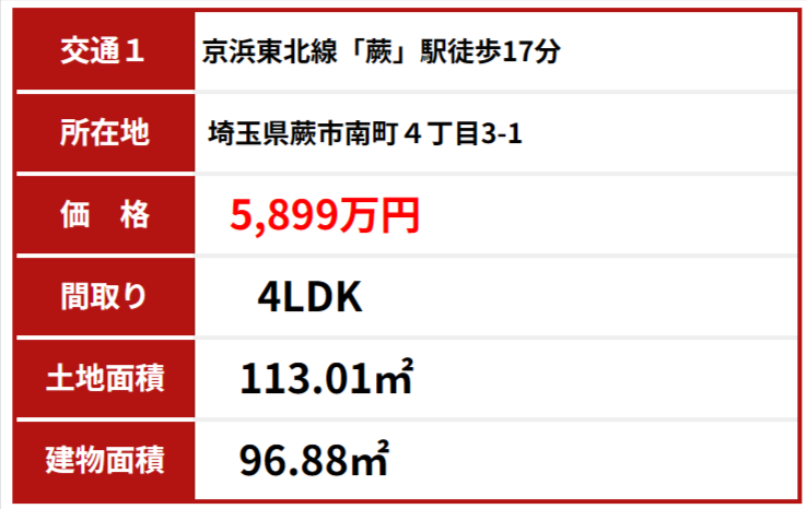 蕨駅徒歩17分の物件のご購入はご安心してスモトクホームにお任せください。